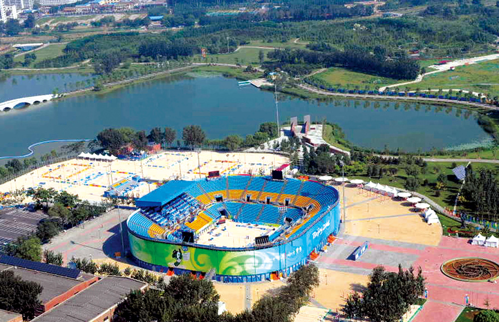 朝陽(yáng)公園沙灘排球場(chǎng)為2008年北京奧運(yùn)場(chǎng)館工程,位于北京市朝陽(yáng)區(qū)朝陽(yáng)公園內(nèi),整個(gè)工程由以下項(xiàng)目組成:一座12000座位的比賽臨時(shí)場(chǎng)館、兩塊熱身場(chǎng)地,其中一塊配200座位的媒體專用席位、六塊訓(xùn)練場(chǎng)地、三座既有建筑物改造工程、室外廣場(chǎng)、道路硬化、市政管線等,工程包括2萬㎡人造沙灘和7萬㎡廣場(chǎng)地面塊材鋪設(shè)。河北省第四建筑工程有限公司施工總承包。