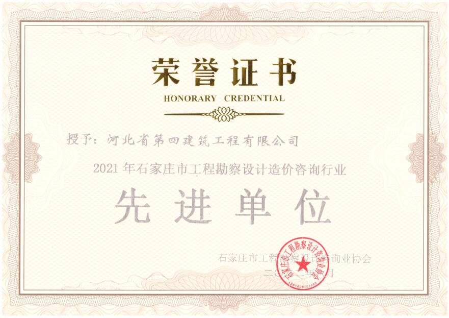 石家莊市工程勘察設(shè)計造價咨詢行業(yè)先進(jìn)單位
