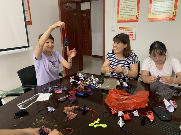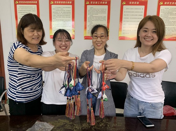 在傳統(tǒng)習(xí)俗中,玲瓏可愛(ài)的各色香包也是端午節(jié)必不可少的元素。包完粽子后大家轉(zhuǎn)移陣地到了活動(dòng)室,大家圍坐桌邊,面前堆放著一份份材料包,有棉布、艾草、針線、中國(guó)結(jié)流蘇。面對(duì)這個(gè)從來(lái)沒(méi)有做過(guò)的DIY,大家開(kāi)始研究起來(lái),有的用手機(jī)搜索縫制方法流程,有的直接比來(lái)比去親自摸索著縫起來(lái)。有職工說(shuō):“這有點(diǎn)像咱們小時(shí)候老人們縫的毽子,那個(gè)里面裝的是五谷雜糧,咱們現(xiàn)在裝的是艾草?!薄斑@香囊可以掛在辦公室或者車(chē)上,有清香、驅(qū)蚊的功效。”“我算是知道了,這個(gè)流蘇應(yīng)該縫在這個(gè)邊的中間,而不是角上……”大家你一句我一句,手中的針線穿梭在棉布間,用密密的針腳縫制出傳統(tǒng)佳節(jié)最好的注解,用絲絲線線纏繞出端午安康的美滿寓意,一個(gè)個(gè)精巧可愛(ài)的三角香囊在大家的努力下完美呈現(xiàn)。