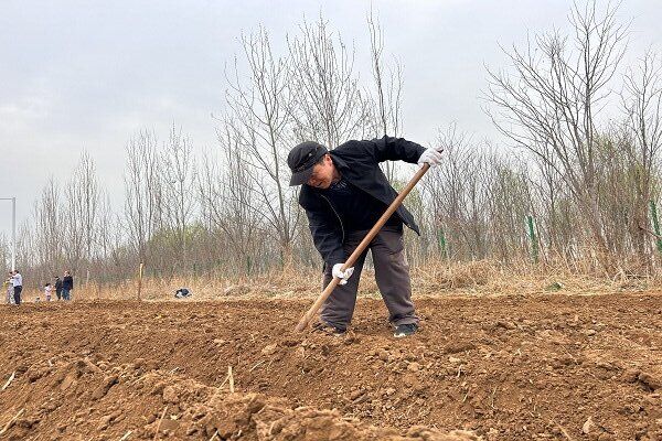 “先把自家的地壟耙起來,然后把地摟平!”在種植基地,不時傳來李懷生指導(dǎo)大家的聲音,各單位積極響應(yīng),熱火朝天地掄起耙子等農(nóng)具,在各自地塊開始了種植前的準備工作。當(dāng)李懷生請來種植基地的技術(shù)人員時,大家紛紛上前認真聽講。技術(shù)人員向大家詳細講解了針對不同種子如何掌握挖坑深度、種植方式、覆膜等需要注意的事項后,大家個個干勁十足,全身心地投入到播種當(dāng)中。種植完成后,大家打開澆灌的水龍頭,咕咕的水流進了耙好的一塊塊地畦里,這一刻,大家共同的期待一定是在這片土地上,能夠看到這些綠色蔬菜的成長與豐收。
