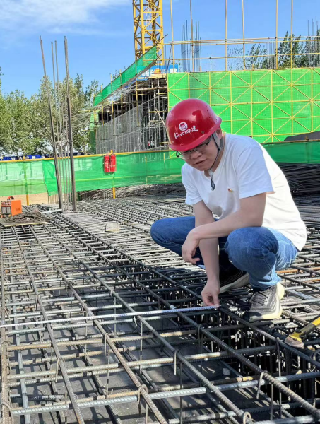 在搶抓進(jìn)度的同時(shí),史驚濤深知質(zhì)量是項(xiàng)目的生命線。他帶領(lǐng)團(tuán)隊(duì)狠抓質(zhì)量控制,實(shí)現(xiàn)過程精品、一次成優(yōu),定期召開“質(zhì)量分析會+作業(yè)面交底會”,嚴(yán)控每一個(gè)環(huán)節(jié)、精研每一道工序,尤其是在地下室施工鋼筋綁扎階段,鋼筋間距密、數(shù)量多,柱插筋、集水坑鋼筋要求位置精確,施工難度較大,他認(rèn)真分析質(zhì)量控制重點(diǎn)和難點(diǎn),進(jìn)行專項(xiàng)攻關(guān),結(jié)合現(xiàn)場實(shí)際情況反復(fù)推敲施工方案,按照圖紙?jiān)O(shè)計(jì)間距,在基礎(chǔ)墊層上彈好鋼筋位置線,綁扎時(shí)嚴(yán)格按照位置線進(jìn)行柱插筋及集水坑鋼筋的放置及綁扎,墻筋采用水平和豎向定位筋,確保綁扎牢固,間距均勻,縱橫成線。