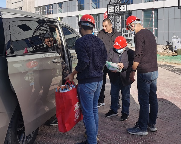 結(jié)合檢查更節(jié)儉。今年公司工會改變以往“冬送溫暖”由工會安排人員專門到項目慰問的形式,而是結(jié)合公司領(lǐng)導(dǎo)到項目檢查工作時,由公司領(lǐng)導(dǎo)代表工會對項目一線職工進(jìn)行慰問,既帶去公司的關(guān)懷,又節(jié)省了差旅費用。公司黨委書記、董事長董富強(qiáng)為五分公司承建的東立實業(yè)集團(tuán)鐵嶺大伙房粉磨站項目職工,公司黨委副書記、董事、總經(jīng)理唐志強(qiáng)和黨委常委、副總經(jīng)理劉金河為四分公司寧晉項目職工,公司黨委副書記、紀(jì)委書記、工會主席李懷生為九分公司山西臨汾威頓項目職工送去了慰問品,其他項目以快遞形式把慰問品送到一線職工手中,做到14個直管項目一線職工慰問全覆蓋,充分體現(xiàn)了公司工會對一線職工的關(guān)懷與愛護(hù)。