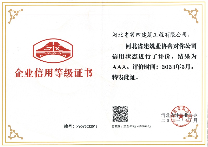 8月15日,公司收到河北省建筑業(yè)協(xié)會頒發(fā)的AAA級企業(yè)信用等級證書,據(jù)悉公司已連續(xù)多年獲此殊榮。
