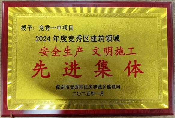 2025年1月14日,在保定市競秀區(qū)住房和城鄉(xiāng)建設局舉辦的2024年度總結(jié)表彰大會上,六分公司競秀一中項目部被授予“安全生產(chǎn)文明施工先進集體”榮譽稱號。