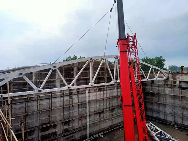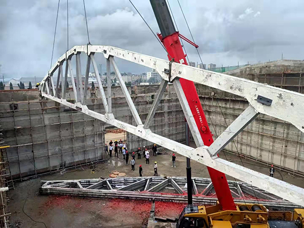 5#平房倉的倉頂由16榀預(yù)應(yīng)力屋架梁和400塊屋面板構(gòu)成,每榀預(yù)應(yīng)力屋架梁重14.24噸,長度達(dá)30米,平房倉的工作重點是預(yù)應(yīng)力屋架梁的制作及吊裝,工作難度大、技術(shù)含量高,項目部緊抓屋架梁預(yù)制這道關(guān)鍵工序,提前謀劃,做好準(zhǔn)備。