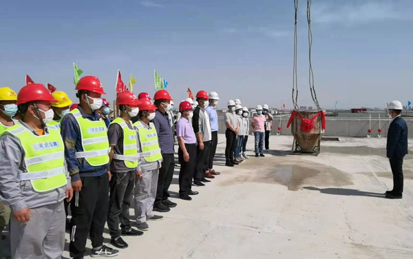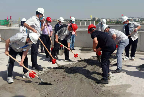 5月25日上午9點(diǎn),八分公司天津正天項(xiàng)目部施工現(xiàn)場(chǎng),紅旗招展,機(jī)器轟鳴,建設(shè)單位、施工單位、監(jiān)理單位齊聚(車(chē)間二)大樓頂層舉行(車(chē)間二)大樓封頂儀式。建設(shè)單位主要領(lǐng)導(dǎo)及部門(mén)人員、施工單位、監(jiān)理單位共50余人出席了封頂儀式。北京納通科技集團(tuán)工業(yè)管理部總經(jīng)理兼正天醫(yī)療器械有限公司廠長(zhǎng)韋漢英代表建設(shè)單位進(jìn)行了講話,對(duì)河北四建高質(zhì)量、高效率的施工表示非常滿意,對(duì)河北四建高效嚴(yán)謹(jǐn)?shù)墓芾斫o予了高度評(píng)價(jià)。