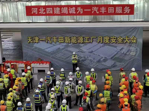 5月27日上午,由業(yè)主天津一汽豐田汽車項(xiàng)目部主辦的“新能源工廠建設(shè)項(xiàng)目月度安全大會(huì)”,在天津分公司施工的樹(shù)脂車間現(xiàn)場(chǎng)召開(kāi)。中建、中冶、浙江寶業(yè)、江蘇江都等23家參建單位,1650人參加了大會(huì)。