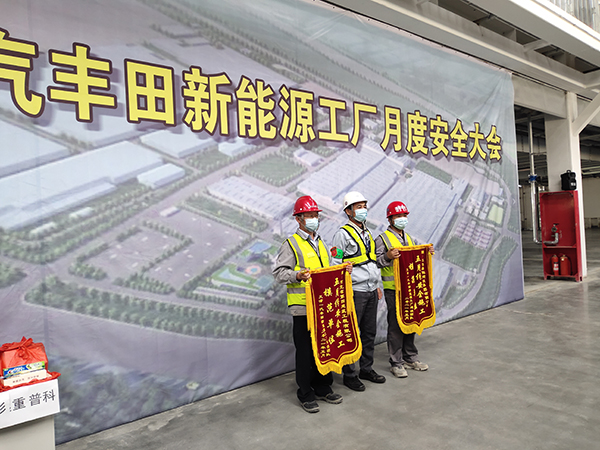會(huì)上,業(yè)主對(duì)所有參建單位自開(kāi)工以來(lái)的安全管理情況進(jìn)行了總結(jié),對(duì)兩家先進(jìn)集體和兩名先進(jìn)個(gè)人進(jìn)行了表彰。天津一汽樹(shù)脂車間項(xiàng)目部由于規(guī)范嚴(yán)謹(jǐn)?shù)墓芾?,在眾多施工單位中脫穎而出,榮獲“五月份安全施工模范單位”錦旗;項(xiàng)目安全員王喜峰榮獲“優(yōu)秀安全員”榮譽(yù)稱號(hào)。日方課長(zhǎng)督查佐藤和一汽豐田汽車總部副總經(jīng)理相馬清親對(duì)天津一汽新能源工廠項(xiàng)目部安全工作給予了表彰,項(xiàng)目經(jīng)理苗建偉在會(huì)上做交流發(fā)言,介紹了項(xiàng)目施工安全管理經(jīng)驗(yàn)。