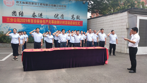 9月18日上午,三分公司組織機關(guān)全體職工在分公司院內(nèi)舉行了第十八次“百日安全生產(chǎn)無事故倒計時”活動啟動儀式,分公司經(jīng)理李書偉帶領(lǐng)職工進行安全宣誓,隨后大家在印有“履職盡責,嚴細管控”活動主題的條幅上簽名。各項目部也相繼開展了倒計時活動啟動儀式。