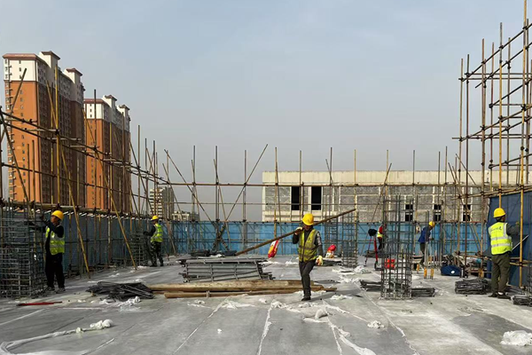 春日天氣漸暖,正是施工項目大干快干的黃金期。項目部搶抓有利時機,吹響“沖鋒號”,奮力沖刺首季目標任務。壓實工作責任,緊盯時間節(jié)點,全面梳理節(jié)點目標、精準倒排工期,優(yōu)化施工組織方案,增加鋼筋綁扎、模板支設等作業(yè)人員共計20余人,分工協(xié)作,全速推進項目進度。目前綜合教學樓已封頂,正在進行餐廳及多功能廳主體結構施工。