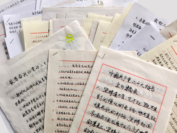 為進一步加深黨員職工對黨的二十大報告的學(xué)習(xí)理解,推進黨的二十大精神進頭腦、進思想,2022年11月26日至12月10日,公司黨委組織開展“最感奮我的黨的二十大報告金句”推薦活動。 通知一經(jīng)下發(fā),雖處疫情居家辦公期間,但大家的積極性絲毫不受影響。公司領(lǐng)導(dǎo)班子成員率先垂范,結(jié)合參加國務(wù)院國資委培訓(xùn)中心學(xué)習(xí)貫徹黨的二十大精神網(wǎng)絡(luò)培訓(xùn)班學(xué)習(xí)收獲,原原本本學(xué)習(xí)黨的二十大報告原文,共推薦金句112條。黨員職工認真學(xué)習(xí)黨的二十大報告,深刻理解報告中的新論斷、新要求、新部署,懷著崇敬的心情,一字一句工整地抄寫著金句,并表示,作為國企職工,要深入學(xué)習(xí)貫徹黨的二十大精神,立足本職、積極工作。十分公司王帥表示,通過摘抄黨的二十大報告金句,又是一次原原本本學(xué)習(xí),通過抄寫,對報告內(nèi)容又有新理解、新收獲,中國共產(chǎn)黨為人民謀幸福,從來都是動真情、出實招、辦實事?!白鳛橐幻h員,要當(dāng)好干事先鋒員,以奮發(fā)有為的姿態(tài)抓工作落實。對照黨的二十大的法治要求,響應(yīng)黨的二十大的號召,我們要做社會主義法治的自覺遵守者、堅定捍衛(wèi)者?!绷止緞⑸f。五分公司丁江霞更是在認真抄寫黨的二十大報告原文的同時,把自己朗誦的黨的二十大報告金句錄制下來,發(fā)送到自己的社交平臺,讓更多的人投身到黨的二十大報告學(xué)習(xí)中來。 本次活動,每名黨員職工分段分條推薦并把黨的二十大報告中讓自己最受感動、最受啟迪、最受鼓舞、最受激勵的原文,用筆抄寫到紙上,每人最少10條,不設(shè)上限。用腦思考、用手抄,手腦并用,學(xué)習(xí)更高效。經(jīng)統(tǒng)計,共計523名黨員職工參與,累計推薦金句5530條,最終公司黨委擇優(yōu)評選出19個作品給予表彰獎勵。(黨委宣傳部)