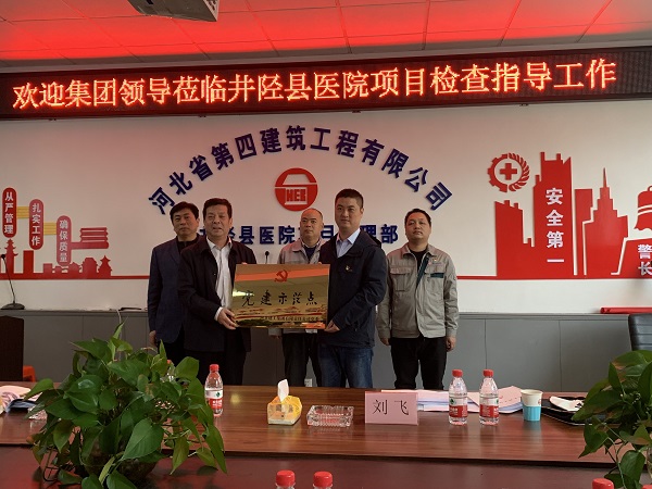 10月27日,集團黨委副書記張慶虎、黨委組織部部長張秋英、黨委組織部劉飛等一行三人到省四建二分公司井陘縣醫(yī)院項目黨支部進行黨建示范點驗收授牌。公司黨委副書記、紀委書記、工會主席李懷生,黨委組織部部長王彥森,分公司黨總支書記孫立鋒一同參加。