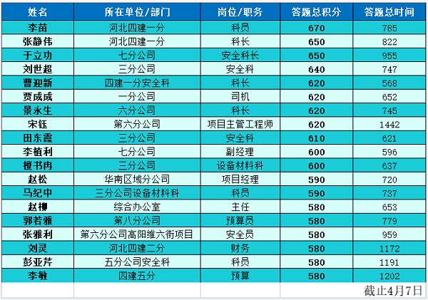 本次活動(dòng)是繼“復(fù)工安全培訓(xùn)第一課”后,公司著眼網(wǎng)絡(luò)平臺優(yōu)勢的又一次運(yùn)用。安全管理部和宣傳部結(jié)合職工使用微信較普遍的實(shí)際,聯(lián)合推出了微信答題活動(dòng),以多樣化的方式開展培訓(xùn)教育,提高了“安全培訓(xùn)教育月”活動(dòng)實(shí)效。(安全管理部)