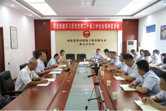 董富強強調,要全力以赴抓好全會精神的學習貫徹工作,一要篤信提站位,充分認識全會的重大意義,把思想和行動統(tǒng)一到黨中央決策部署上來,要堅持和落實“兩個毫不動搖”,以實際行動捍衛(wèi)“兩個確立”,堅決做到“兩個維護”。二要篤學悟精神,采取多種形式抓好全會精神的學習,加強統(tǒng)籌協(xié)調和督促指導,做到學深悟透、融會貫通。三要篤行齊奮進,以全會精神為指引,增強機遇意識,堅定信心,全力做好市場開發(fā)、風險防控、項目管理等工作,推進公司發(fā)展邁出新步伐,為奮力譜寫中國式現(xiàn)代化建設河北篇章作出河北四建新貢獻。