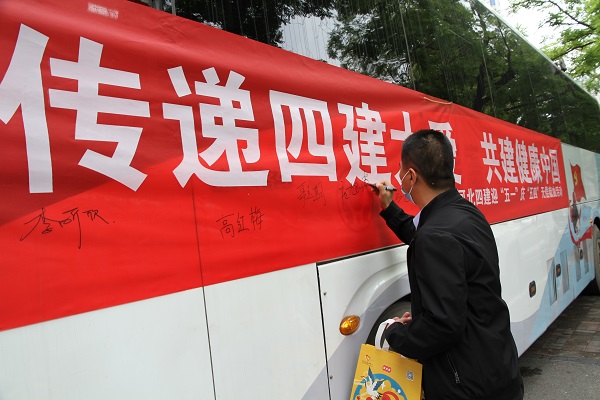 4月28日下午2點,在公司門口,一輛懸掛有“傳遞四建大愛、共建健康中國”紅色條幅的白色獻血車,和門口正上方的“河北四建”四個紅色大字相互映襯,顯得格外醒目;一條由四建職工組成的隊伍“長龍”,正在徐徐向前移動著。此時,由公司黨委宣傳部和團委聯合組織的以“傳遞四建大愛、共建健康中國”為主題的迎“五一”慶“五四”無償獻血活動,正在有條不紊進行中。公司機關以及附近片區(qū)的各單位職工共計48人參與。